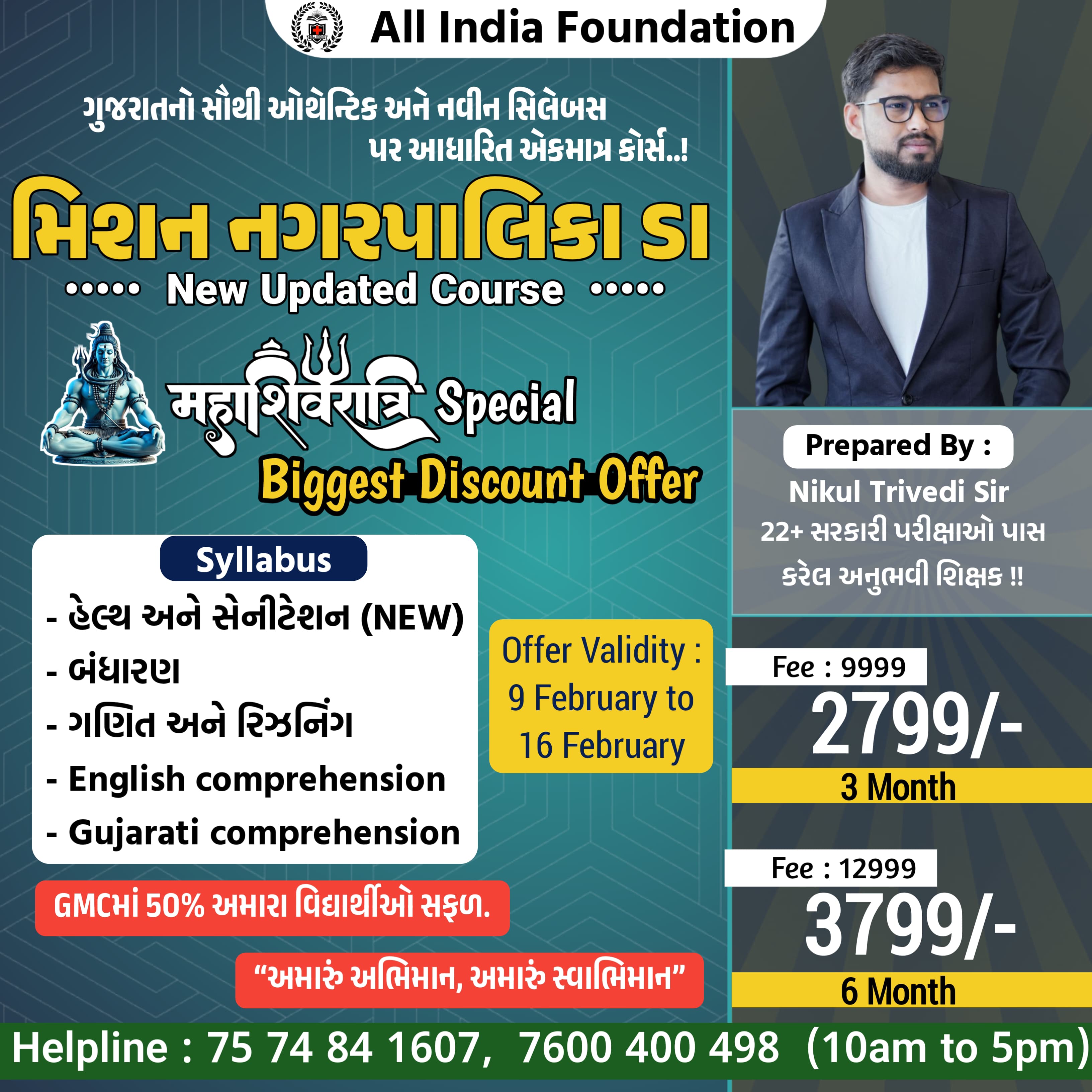 🎯New Update course 2025 🎯 🎯 Target નગરપાલિકા SI 🎯 💥Live + recorded video lectures 💐 💥 નવા સિલેબસ પ્રમાણે લેક્ચર રેકોર્ડિંગ મળશે 💐 Health and sanitation Reasoning Maths Polity Gujarati Comprehension English Comprehension ❌ મટીરીયલ ની પ્રિન્ટ નહીં કઢાવી શકો. ❌fees not refundable. ❌course not transferred 📢 નોંધ 🔐 લૉગિન માટેના નિયમો: નોંધ : દરેક વિદ્યાર્થીને ફક્ત ૨ ડિવાઇસ સુધી લૉગિન કરવાની મંજૂરી રહેશે: 📱 ૧ મોબાઇલ લૉગિન 💻 ૧ વેબ લૉગિન ⚠️ ત્રીજી કોઈપણ ડિવાઇસમાં લૉગિન શક્ય નથી. ➡️ કૃપા કરીને લૉગિન કરતી વખતે વિશેષ સાવચેતી રાખો. ✨ તમારા સહકાર માટે આભાર! - ઓલ ઇન્ડિયા ફાઉન્ડેશન (All India Foundation) 🇮🇳 ⚠️ *Quick Alert - Suspicious Activity Detected* 🔒 જો Application માં કોઈપણ Suspicious Activity જોવા મળશે, તો તમારું Account Automatically Block થઈ જશે. 📞 Block થયેલા Users Helpline પર Contact કરી શકે છે; ટીમ Login Device Report તપાસશે. ⏳ Verification માટે સામાન્ય રીતે 24–48 Hours લાગે છે, ત્યાં સુધી Account Block જ રહેશે. 🚫 ક્યારેય પણ કોઈને તમારો OTP Share ન કરો, નહીં તો તમારું Course / Account Permanently Block થઈ શકે છે. 🔐 *Safety Policy* 1️⃣ System કોઈપણ Unusual Activity Detect કરશે તો Account Auto-Block થશે. 2️⃣ Helpline Team Login Device Report Verify કરીને Genuine હોવાનું જણાશે તો Account Unblock કરશે. 3️⃣ Review Process માટે 24–48 Hours લાગશે. 4️⃣ OTP આપવાથી Account Block થવાની તથા Personal Information Leak થવાની શક્યતા છે. ⚠️ ઘણા Users સાથે આવી ઘટના થઈ ચૂકી છે અને બ્લોક થઈ ગયેલ છે. 📱 નોંધ: તમારા મોબાઇલમાં એપ્લિકેશનમાં આપેલ નંબરનું સિમ કાર્ડ હોઉં જોઈએ તો જ લૉગિન કરી શકશો. જો એ નંબર બીજાનો હશે અથવા બીજા કોઈ મોબાઇલમાં હશે તો તમે તે નંબરથી લૉગિન નહીં કરી શકો. આથી પોતાના મોબાઇલમાં જ અને પોતાનું જ સીમકાર્ડ હોઉં આવશ્યક છે.